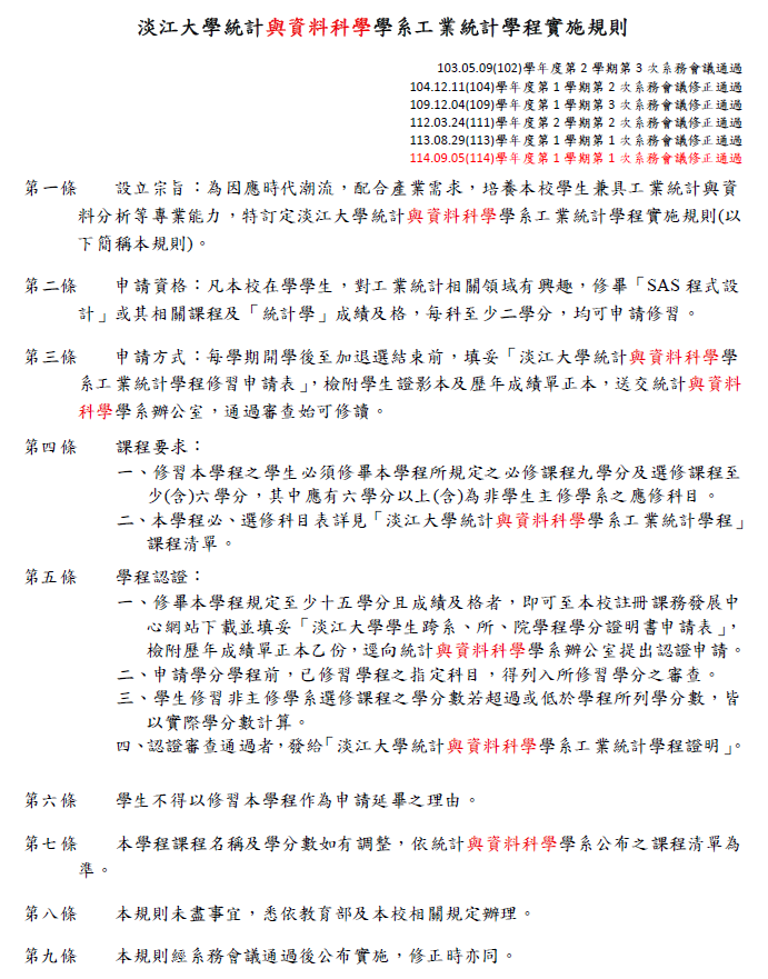 工業統計學程實施規則