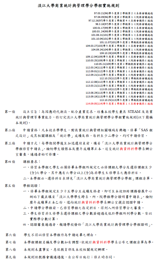商業統計與管理學分學程實施規則