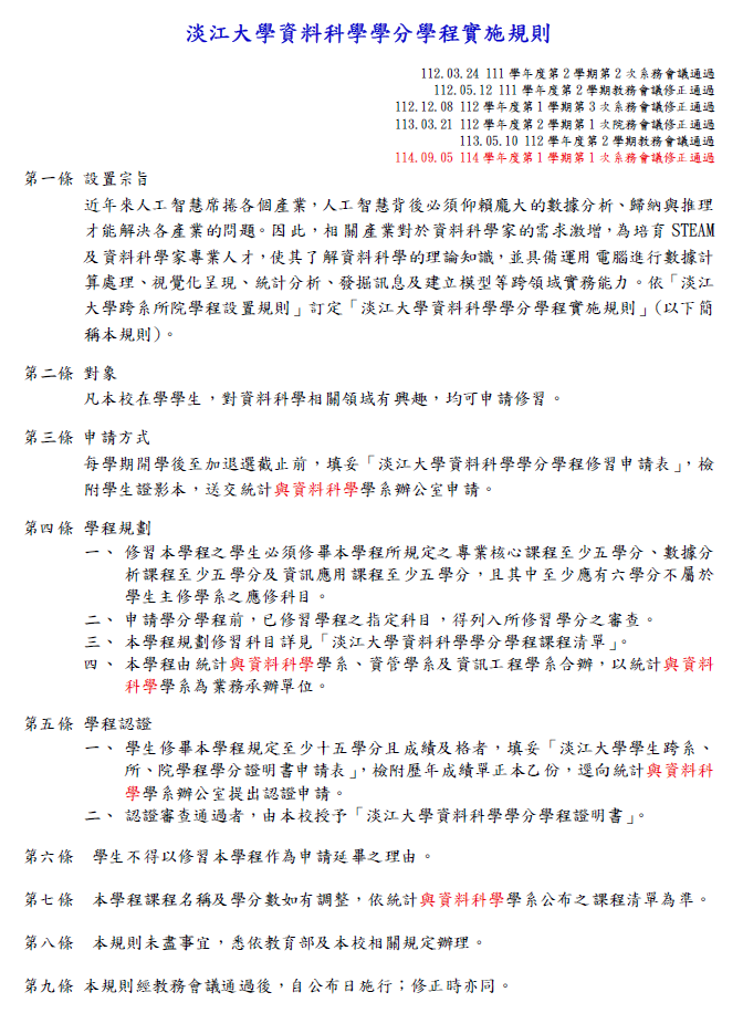 資料科學學分學程實施規則